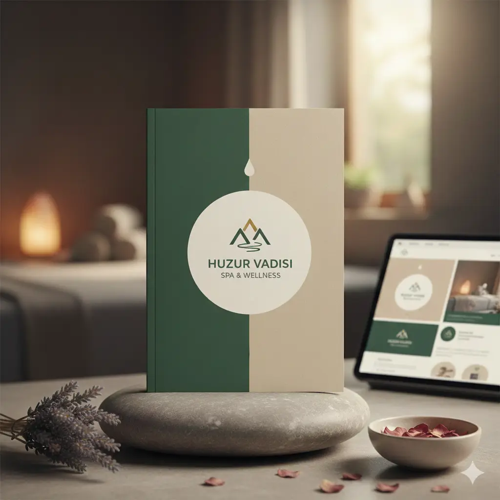Huzur Vadisi Spa & Wellness için markanın sakin ve lüks ambiyansını yansıtan kapsamlı bir grafik tasarım çalışması yapıldı. Logo, kurumsal renk paleti, broşürler, sosyal medya görselleri ve web sitesi arayüzü yeniden tasarlanarak tutarlı ve estetik bir marka kimliği oluşturuldu.